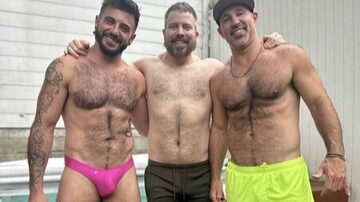 Scene Description: After hot tub blow jobs, spit roasting and making out in the private backyard, Ian Holms, Kano and Kev Inspiring take the party inside. Part 2 picks up in side where the three of them flip fuck and finish all over each other. |