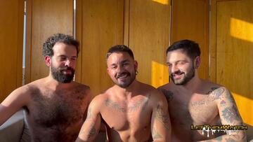 Ikarus opens up for us and takes it all raw — begging, moaning, and dripping spit 😈🍆 Milo and I slam our big cocks down his throat until he’s gagging, drooling, and gasping for more 💦 We switch from et sloppy kisses to pounding his hole rough and deep, stretching him wide in every position. Sweat, spit, and cum everywhere as he screams and takes it like a champ — his whole body shaking under our weight 🔥