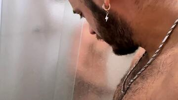 My gymbro paid me a visit after training, but while I was taking a shower he asked me to share the bathroom to relief himself. I got hard with that situation and invited him to join my bath 😈🫧💦
